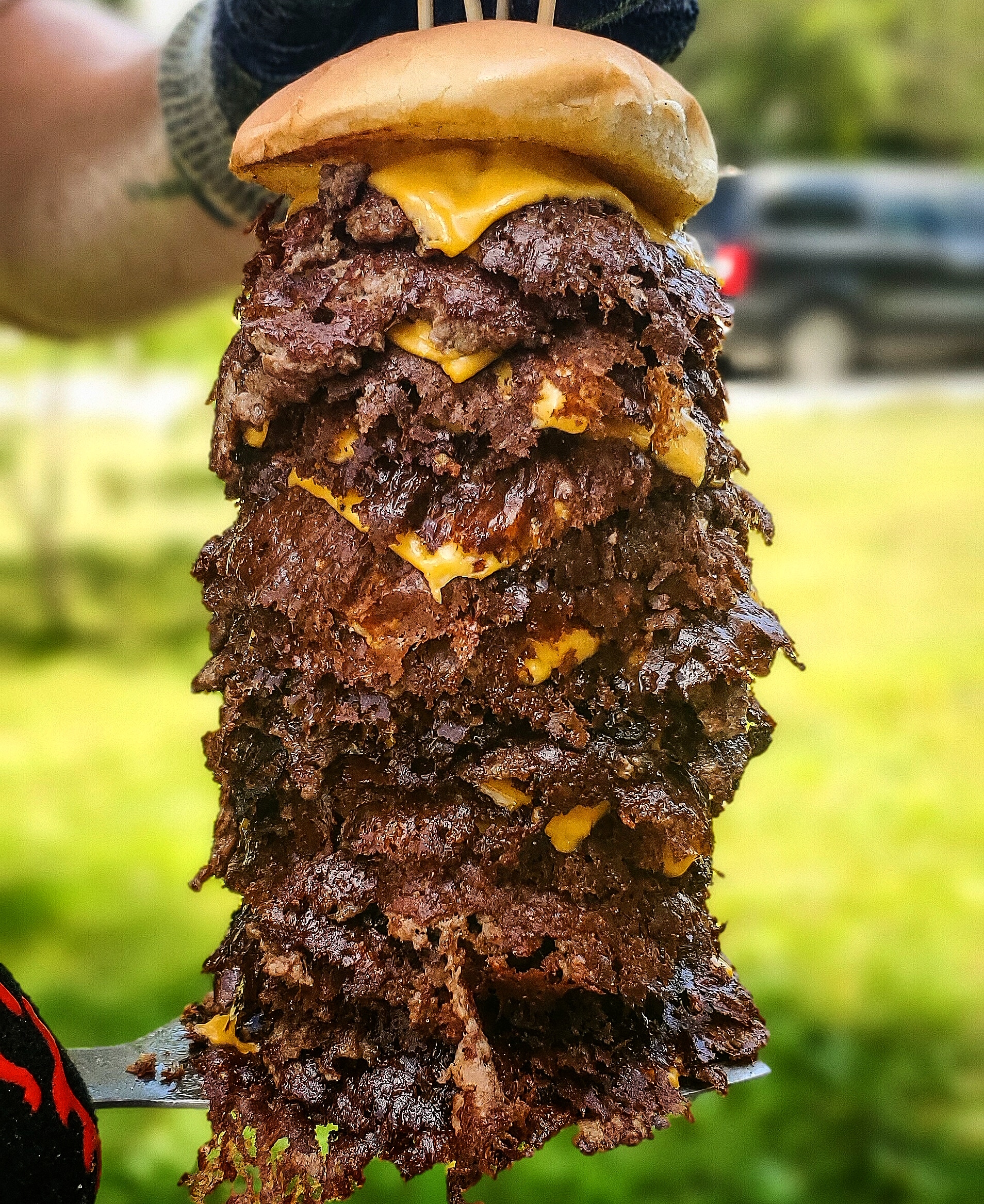 Two Farmers is based out of Mt. Carmel, but they have no problem traveling around to several different southern Illinois communities to vend. No matter where they go, one of the fan favorites on the menu is “The Grind.” It’s a one pound, eight patty cheeseburger, and the pictures of it will make you salivate at first sight. But as you may imagine, folks want to go bigger. “After a while, people became attracted to the idea of eating larger burgers so we decided to open up a "name your own burger" challenge,” explains Dillon Famer. “Basically, if a person comes and orders a burger, finishes it within an hour in one sitting, and is the first to do so, they are free to name it.” Dillon's favorite part of the job is building these larger burgers, a large reason being, he has a flair for "over the top" food and has eaten a 25-patty burger himself along with several other food challenges. “To date, the only burgers that have yet to be named are 18, 19, and 21+. We have had a large amount of people attempt 25 but all fell short. This seems to be the burger people are chasing and we foresee it being conquered very soon,” Farmer added.