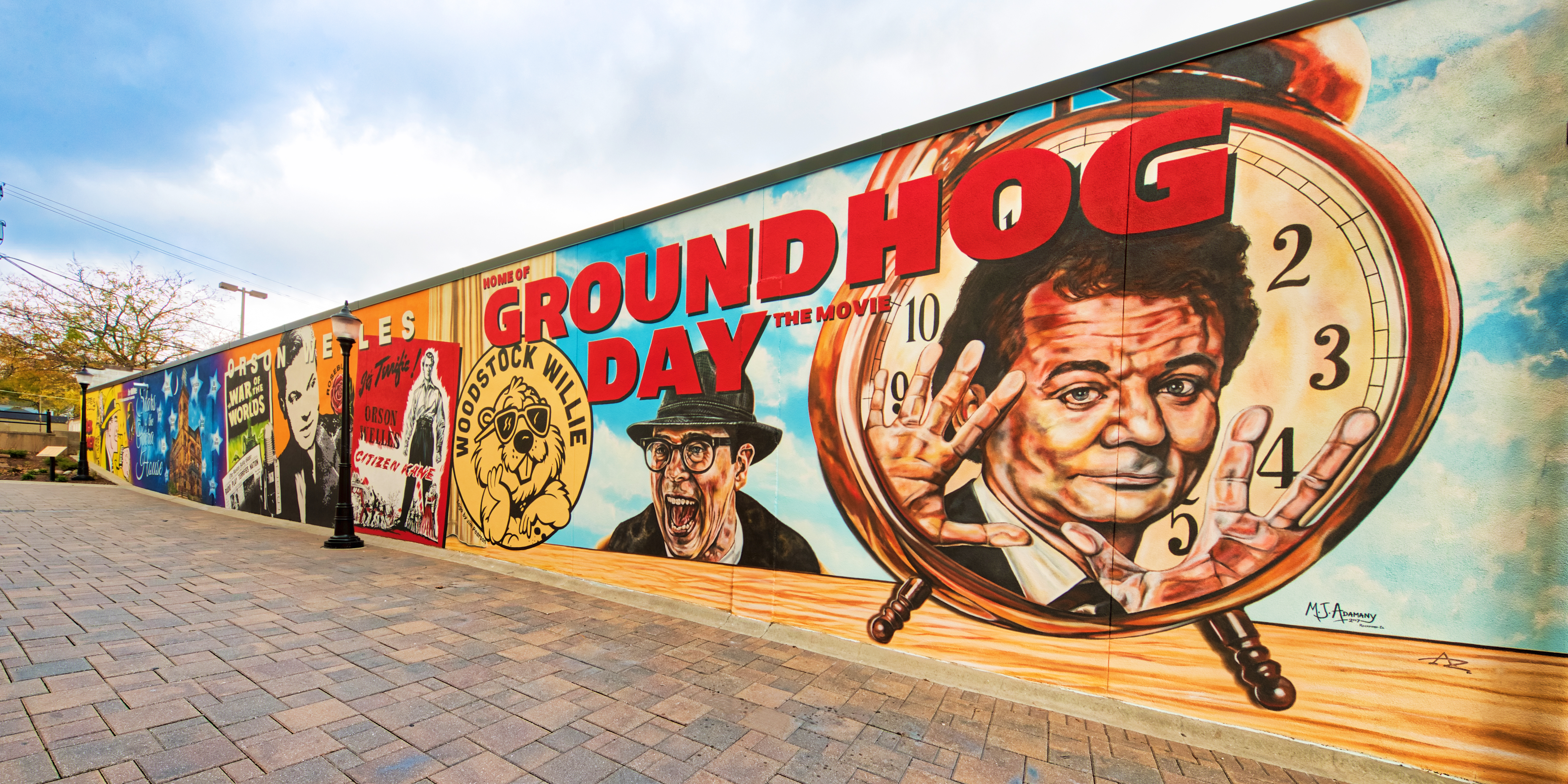 Woodstock on Film and on the Stage Mural and Sculpture Garden features Woodstock’s cultural legends including Orson Welles, Chester Gould, Bill Murray, and Groundhog Day, Geraldine Page, Paul Newman and so many more. Visitors from all over flock to Woodstock, IL to revel in all things Groundhog Day the movie. While visiting the filming locations you must visit the mural and snap a photo with Ned Ryerson’s friendly face.
