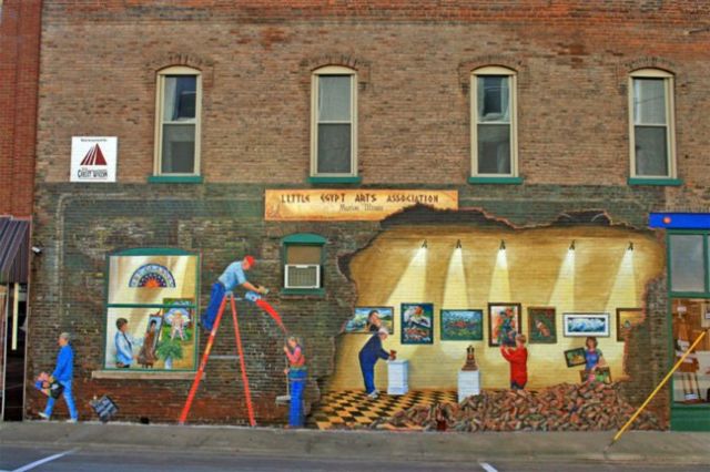 Downstate Illinois is home to dozens of amazing artists. Some of the more unique art lies in Granite City’s Art and Design District, which is home to a large clown head and a giant operating swing that can fit ten people! Speaking of unique, you’ll see many pieces of folk art on display throughout the Village of Palestine. Steve Meadows, owner of S.D. Meadows Folk Art Gallery, has methodically scattered his artwork in town – everything from pieces that look like robots, to a creature that has a giant tongue. Then, of course, there are fantastic murals in several communities. Belleville’s Mural Project features several beautiful murals that can be found in many spots throughout the city. Last but certainly not least, there’s Marshall – which has 27 murals and 40 painted lions showcased everywhere you look. We hope you enjoy the art!